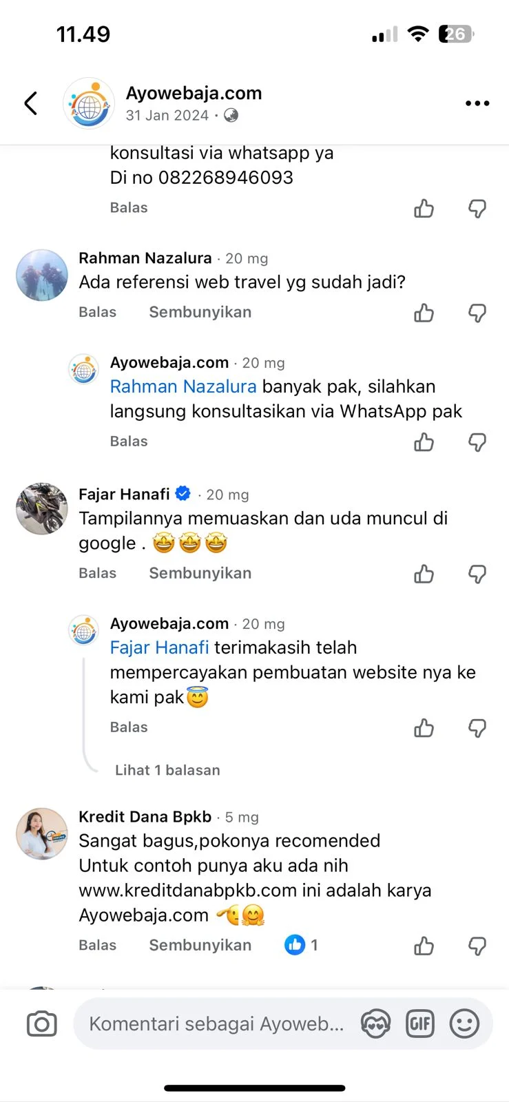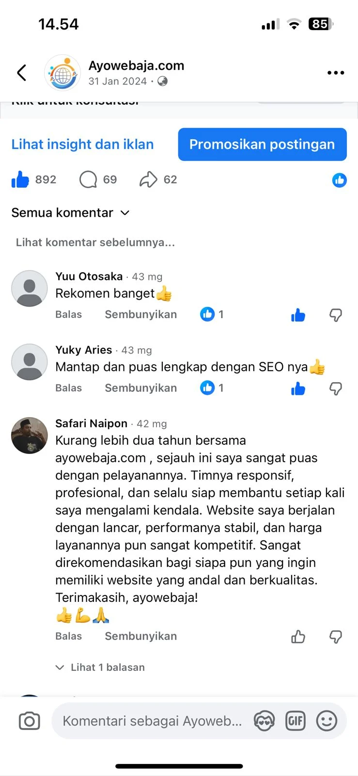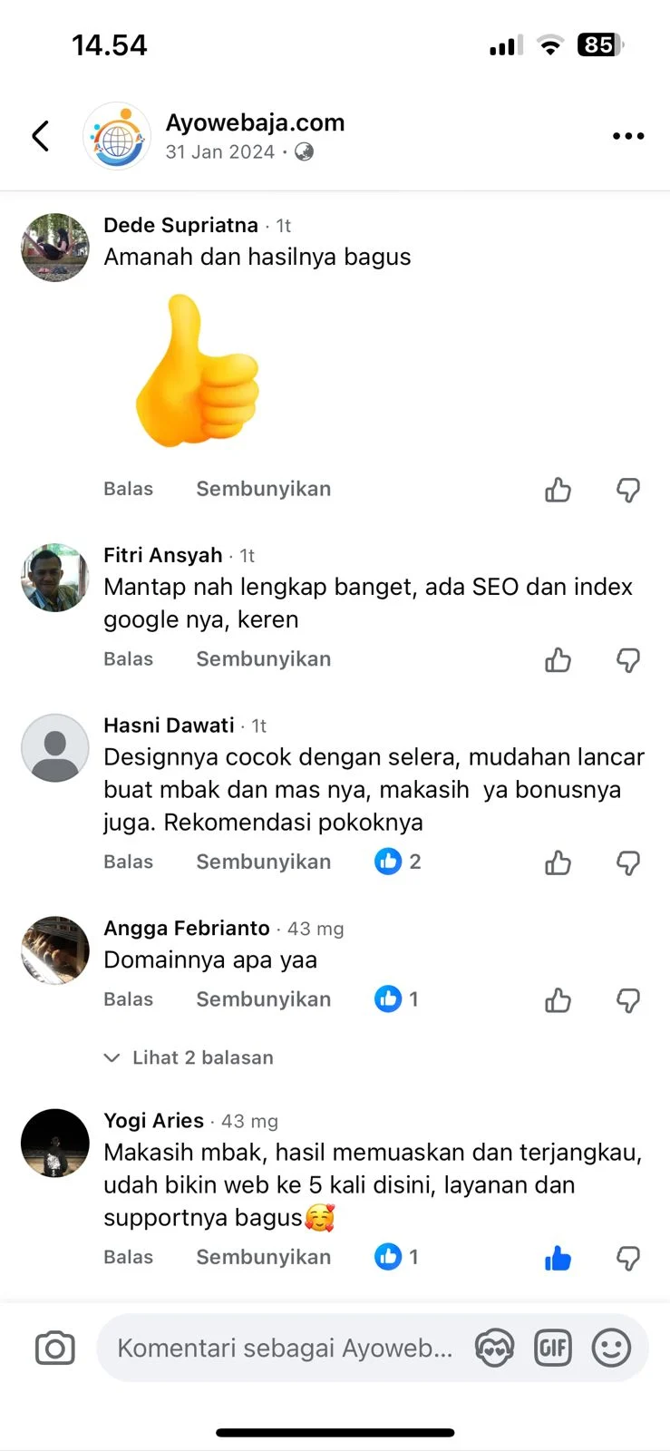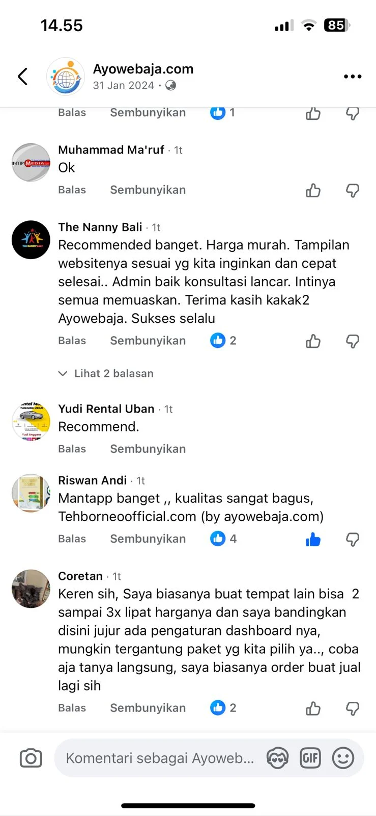 Website adalah investasi jangka panjang untuk bisnis Anda. Dengan website yang dibuat secara profesional, Anda bisa menjangkau pasar yang lebih luas dan meningkatkan brand awareness Anda.